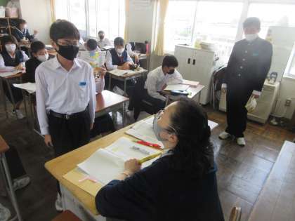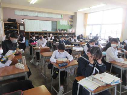2−3(その2) 公開日 2022/05/13 更新日 2022/05/13 第2学年 自分の順番が来るまで、練習します。 「ねえ、聞いてくれる?」「いいよ!!」 「春はあけぼの、ようよう白くなりゆく山ぎわ・・・。」