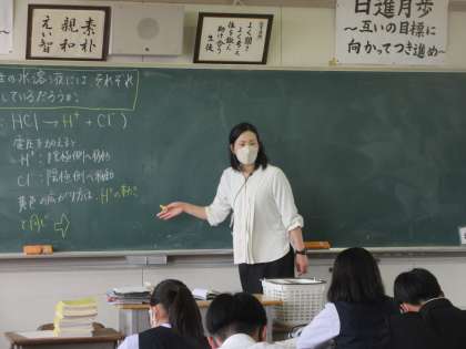 理科の授業です。 酸性やアルカリ性の水溶液には、それぞれ何が共通しているのかを学習しました。