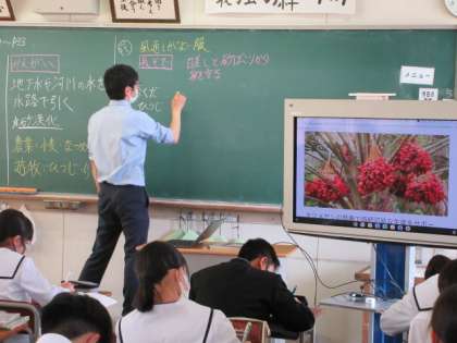 乾燥した地域では、どんな住居に住んでいるだろう?隣の人と意見交換中です。「意外にコンクリート?」「風通しいいんじゃない?」