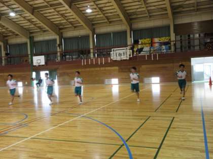 保健体育の授業です。 シャトルランを行いました。 ブザーに遅れないように走り続けました。