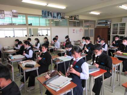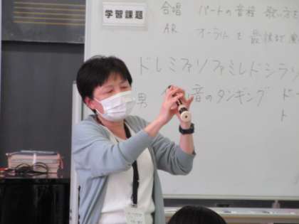 音楽の授業です。 アルトリコーダーで「オーラリー」の合奏に挑戦しました。