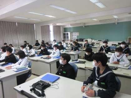 技術・家庭科の授業です。 ブラインドタッチの練習です。