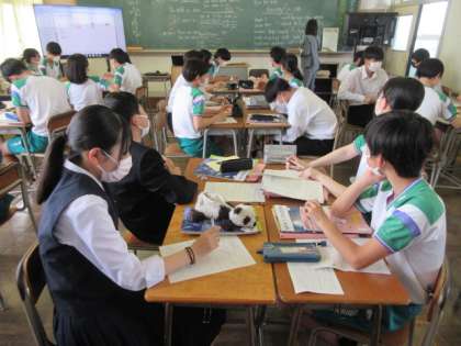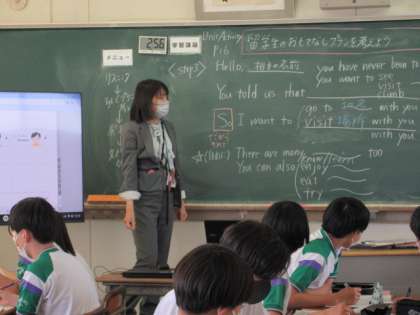 英語の授業です。 留学生をもてなすための手紙を書く設定で、様々な英語の表現を学びました。