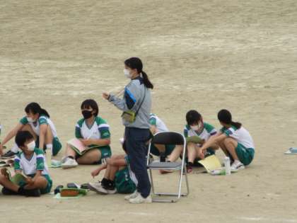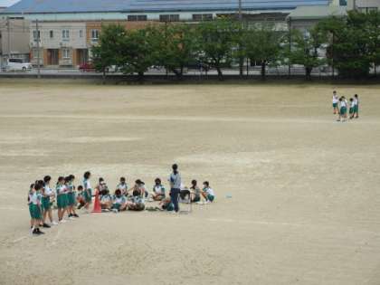 保健体育の授業です。 暑い中、持久走をしています。 がんばれ!!