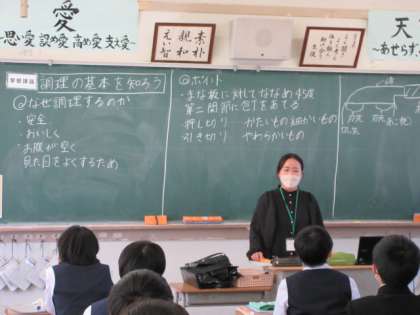 技術家庭科(家庭領域)の授業です。