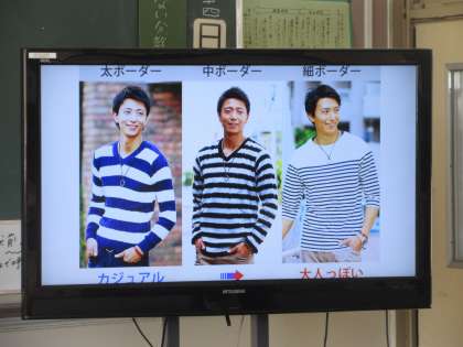 「ボーダーの幅が太くなると、横に大きく見えるよね。ということは・・・。」