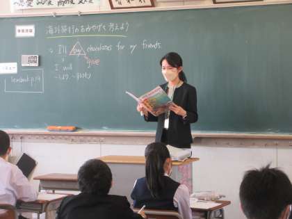 英語の授業です。 海外旅行のお土産を考えました。 「ハワイのお土産は、やっぱりマカダミアチョコレートかな・・・。」