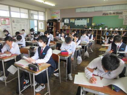 国語の授業です。 中間評価の解説です。