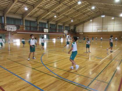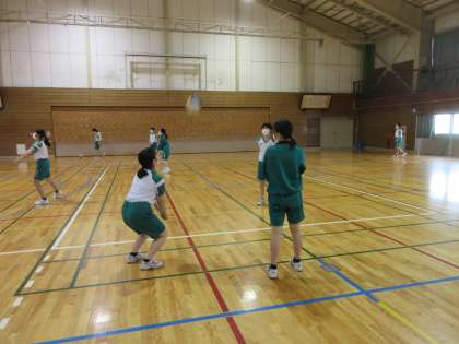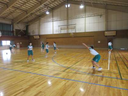保健体育の授業です。 バレーボールのアンダーハンドパスとオーバーハンドパスを練習しました。