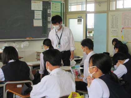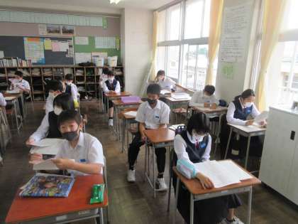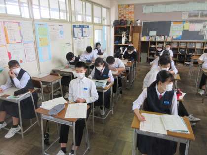 理科の授業です。 中間評価の解説です。 「点数、上がったよっ!!」