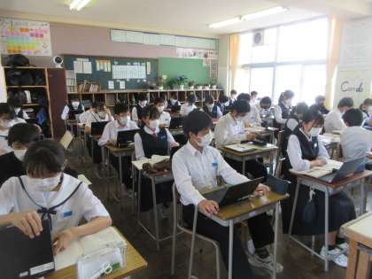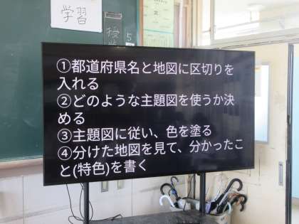 社会の授業です。 自分で主題を見付けて、都道府県の分布を考えます。