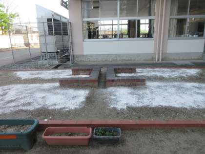 酸性になった土をアルカリ性に変えるために、石灰をまきました。