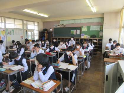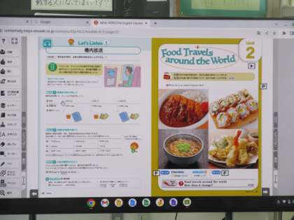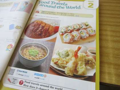 英語の授業です。 機内放送の聞き取りです。 「こんな機内食なら、毎日食べたい・・・。」