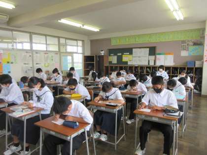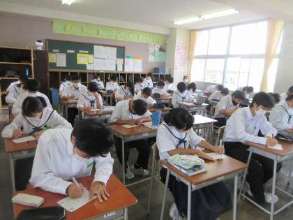 国語の授業です。 まずは、漢字小テスト。毎時間の積み重ねが、大きな力になります。