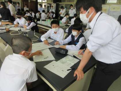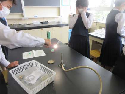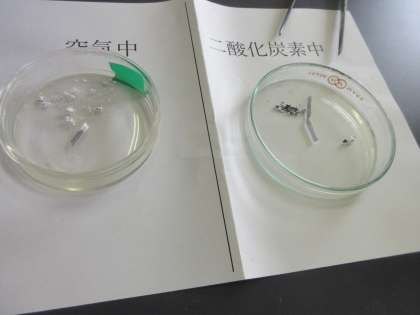 研究授業(2−1)その5 公開日 2022/06/06 更新日 2022/06/06 第2学年 マグネシウムを燃焼します。 「すっげぇ明るい!!」 光は出ますが、音はしません・・・。 結果から考察します。