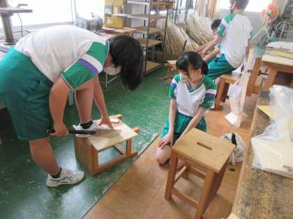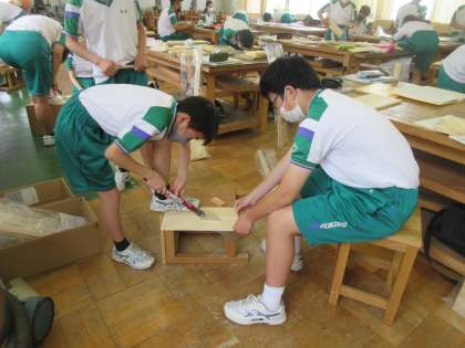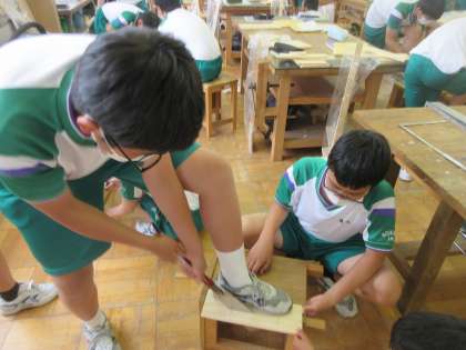 木工です。板材をけがき線にそってまっすぐ切断します。