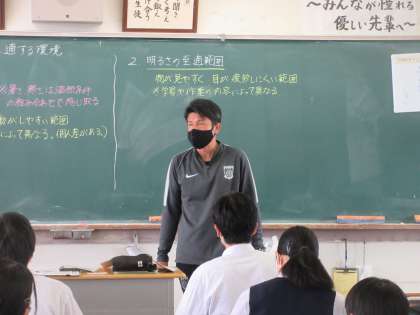 保健体育の授業です。 活動に適する環境を学習しました。