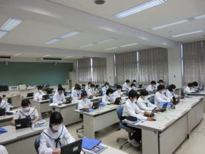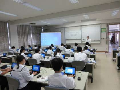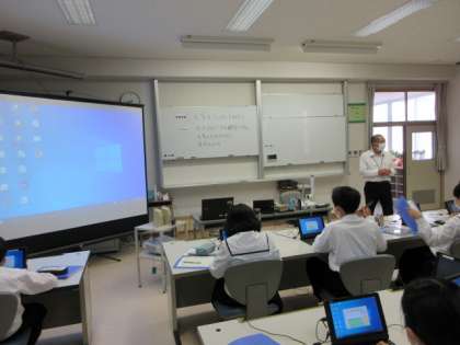 技術・家庭科の授業です。 素早く正確に打てるよう、タイピングの練習をしました。