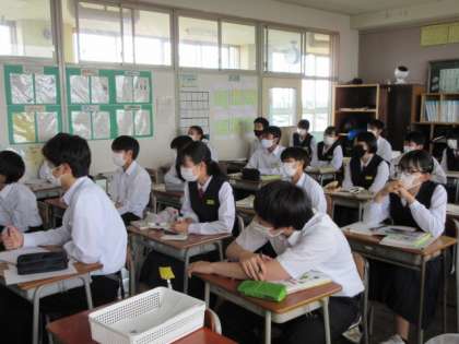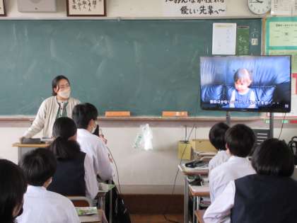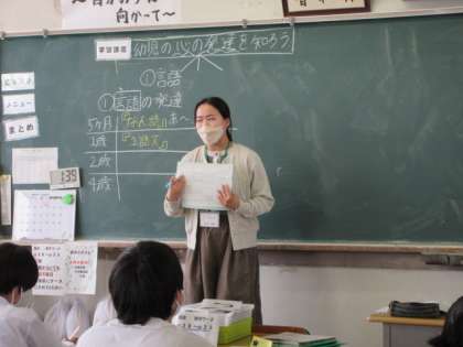 3−3 公開日 2022/06/08 更新日 2022/06/08 第3学年 技術・家庭科の授業です。「幼児の心の発達」を学習しました。幼児が発する言葉に耳を傾けています。みんなも、こんなこと言っていたんだよ。