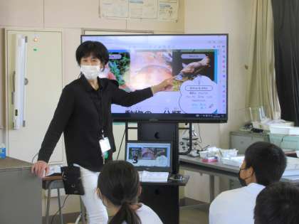 「カモノハシは、ホニュウ類なんだけど、卵を産むんだよ。」 「えっ・・・。」