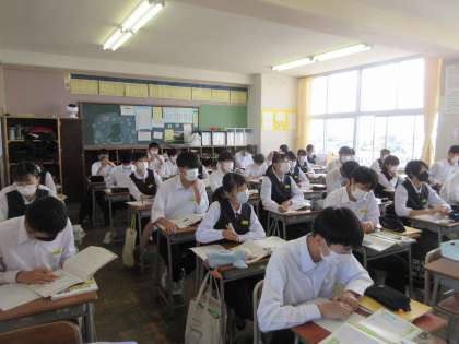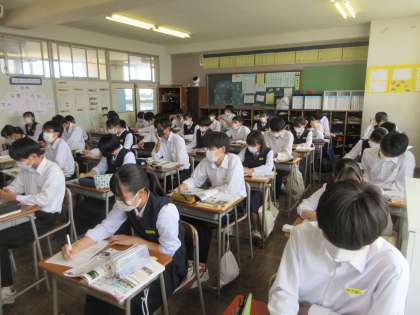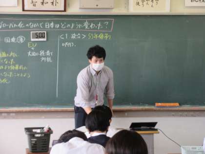 社会の授業です。 グローバル化の中での、日本の変化を学習しました。