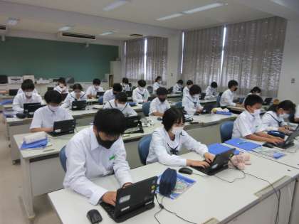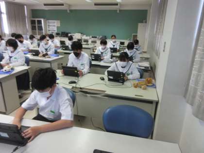 技術・家庭科の授業です。 タイピングの練習です。