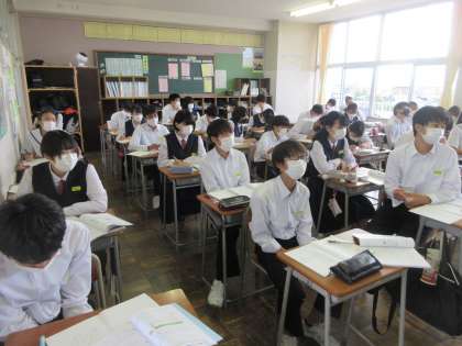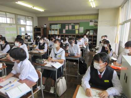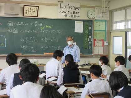 数学の授業です。 根号の付いた数の乗法・除法を学習しました。