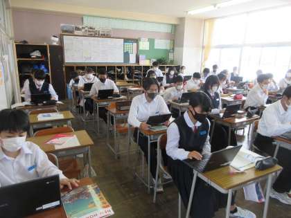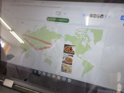 英語の授業です。 カレーはどのように日本にやってきたのかを学習しました。