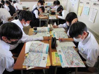 社会は、公民分野の学習です。40年前と今の社会を比較しています。「テレビがうすい!」「公衆電話ボックスがなくなった。」「土がない・・・」ずいぶん、変化があります。