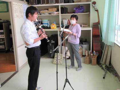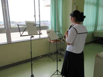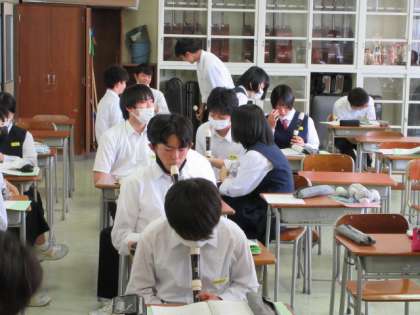 音楽は、アルトリコーダーの実技テストです。一人ずつ、先生の前で演奏しました。緊張する瞬間です。待っている人は、猛練習です。