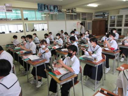 音楽の授業です。 アルトリコーダー使い方を学習しました。 アルトリコーダーの大きさに、びっくりしていました。