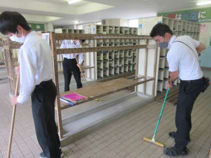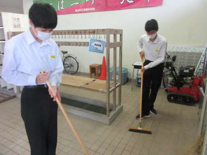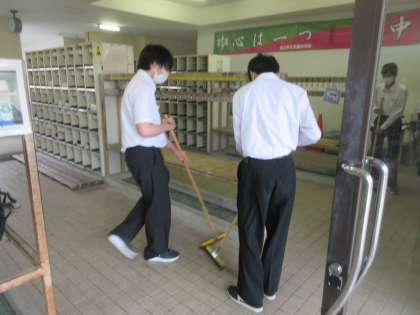 生徒玄関をきれいに掃いてくれました。