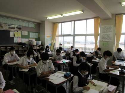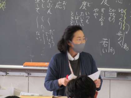 国語の授業です。 様々な自立語を分類し、どのように活用するかを学習しました。