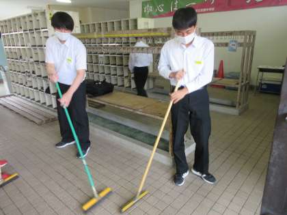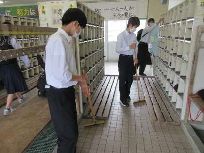 「草むしりもないから、今日は掃き掃除にしよう!!」
