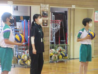 保健体育の授業です。 バレーボールのアンダーハンドパスを練習しました。