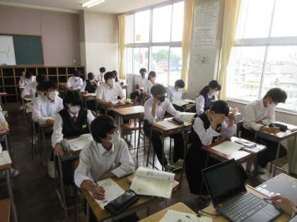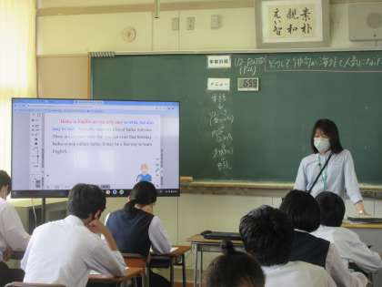 英語の授業です。 どうして俳句が海外で人気になったのかを読み取りました。