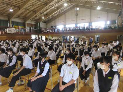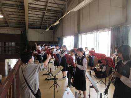 今回は、久しぶりに、吹奏楽部が2階ギャラリーで入退場の演奏を行いました。