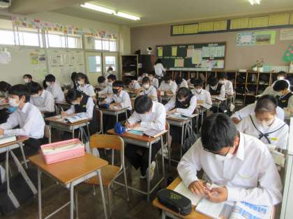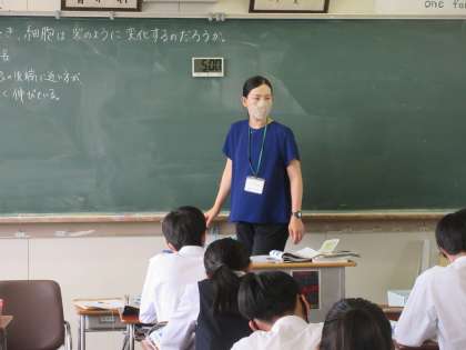 理科の授業です。 生物が成長するときの、細胞の変化を学習しました。