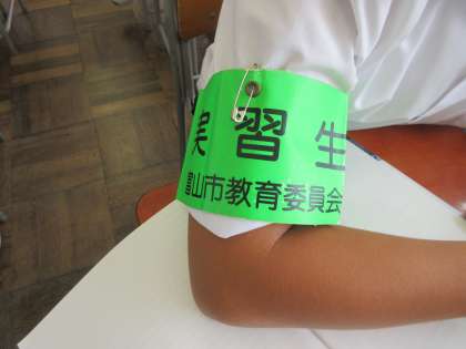 もうすぐ、社会に学ぶ「14歳の挑戦」だからでしょうか、すでに腕章を付けて、やる気満々の人がいます!!