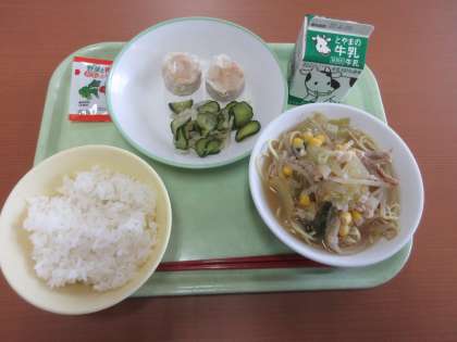 コーンがいっぱい!!まさしくサッポロラーメン!! ごはん 牛乳 かにシューマイ 大根サラダ サッポロラーメン 野菜ふりかけ