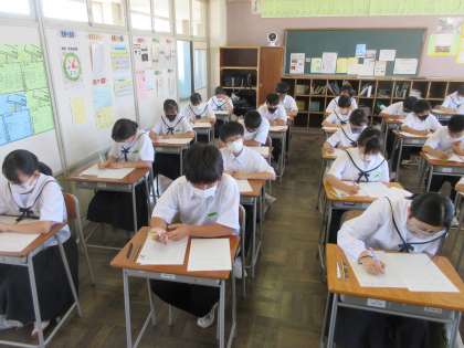 1年生の期末評価一日目は、音楽、国語、理科のテストです。