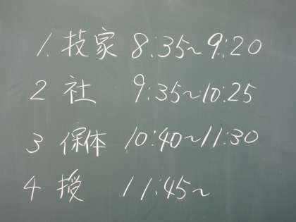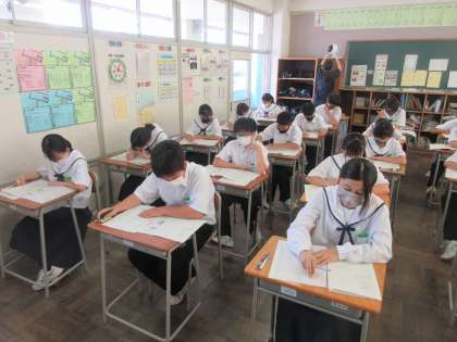 1年生の最終日は、技・家、社会、保体のテストを行いました。