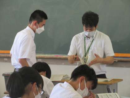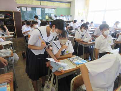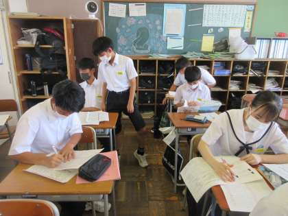 社会の授業です。 期末評価の見直しです。 「すっご〜い、この問題分かったんだぁ・・・。」