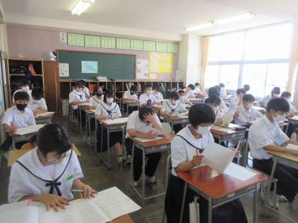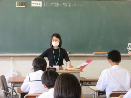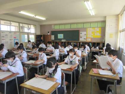 1−3 公開日 2022/07/01 更新日 2022/07/01 第1学年 英語の授業です。期末評価の見直しです。 「もったいない間違いが、いっぱいあったよ。」 「わっ、△が7つもある・・・。ここは、小文字かぁ・・・。」