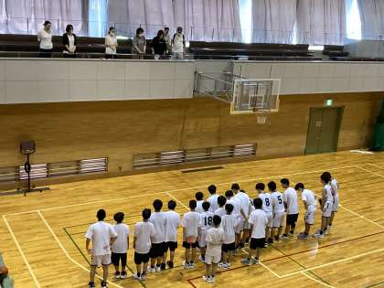 市民体育大会(男子バスケットボール部)その4 公開日 2022/07/02 更新日 2022/07/02 北中NEWS 大沢野戦、55対31で勝ちました! 仲間を信じてパス、リバウンド、そして攻めのディフェンス、チームプレイが効果的でした。ベンチの応援も力が入ります。 保護者の皆様、朝早くから弁当の準備に送迎、応援していただきありがとうございました。明日も、頑張ります。 明日は、山室中戦です。