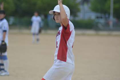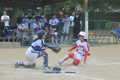 ワン・アウト、満塁のチャンス!! 渾身のスライディングで得点を狙います!!