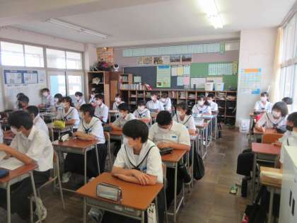 保健体育の授業です。 サッカーのイメージトレーニングです。