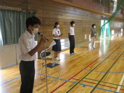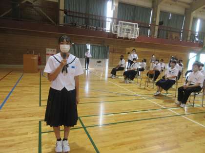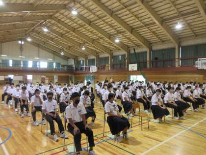 2年生が、明日から始まる、社会に学ぶ「14歳の挑戦」に向けて、出発式を行いました。
