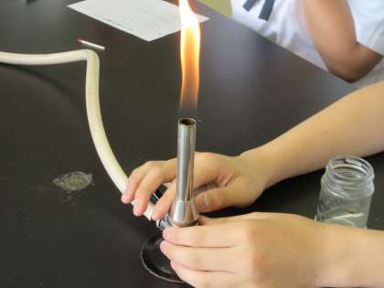 「まずは、ガス栓を開いて、うっ、マッチがなかなか付かない・・・。」