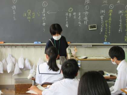 国語の授業です。 「比喩で広がる言葉の世界」を学習しました。